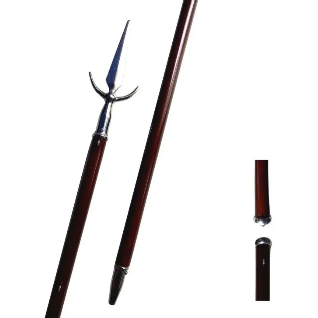 – Moharra de bronce cromado (en forma de flor de lis). Regatón de bronce cromado en su parte inferior. Lleva 4 anillas pasa cintas de bronce cromado.