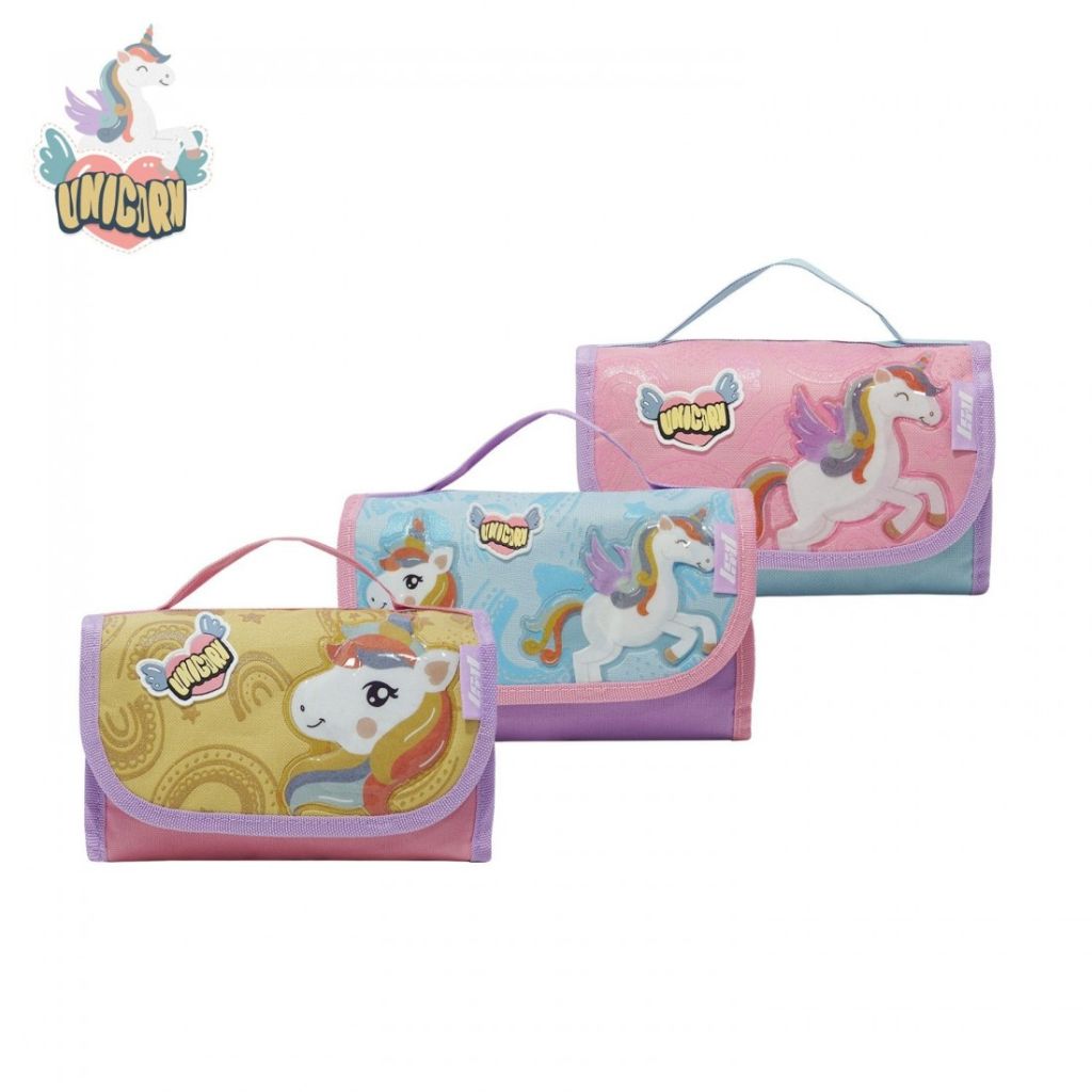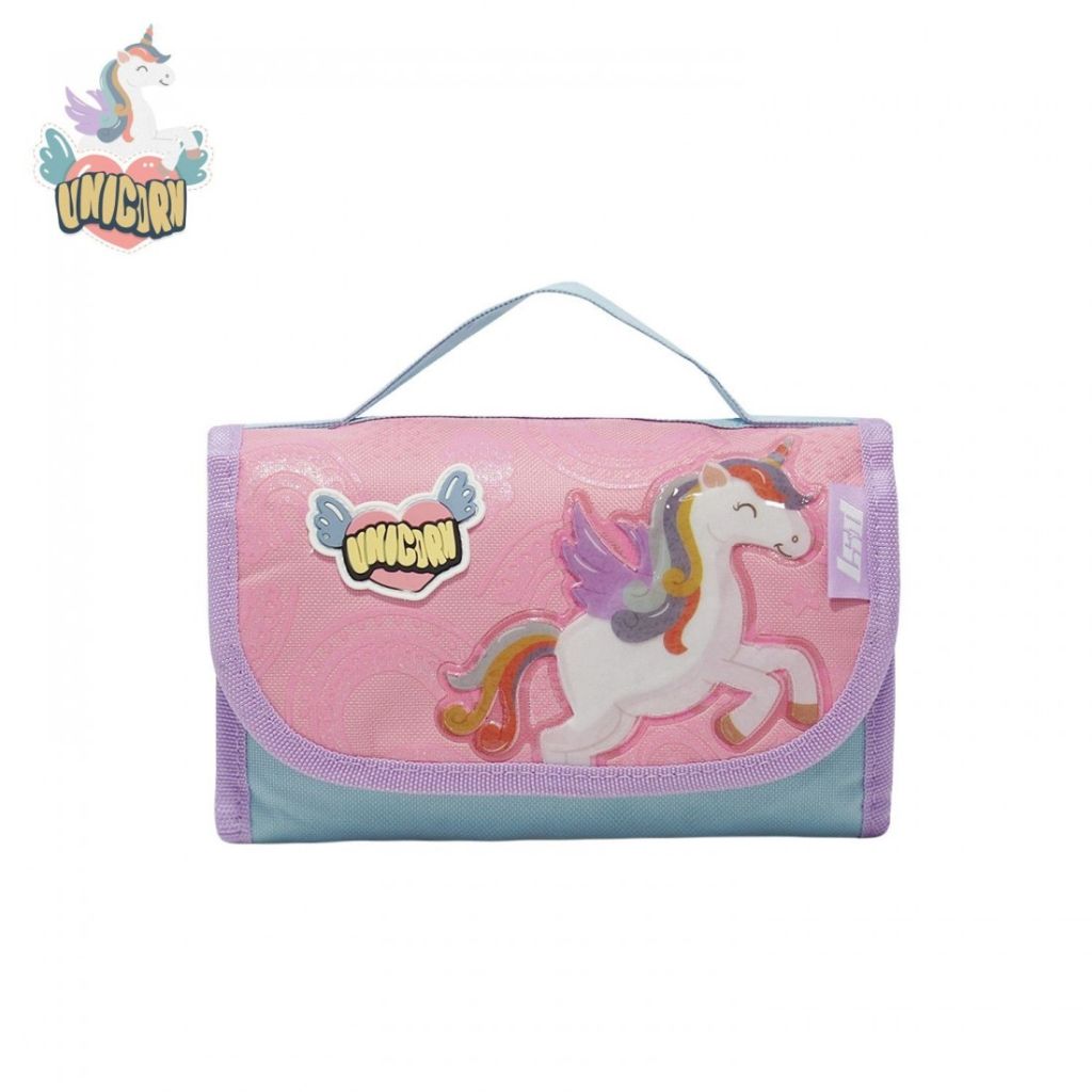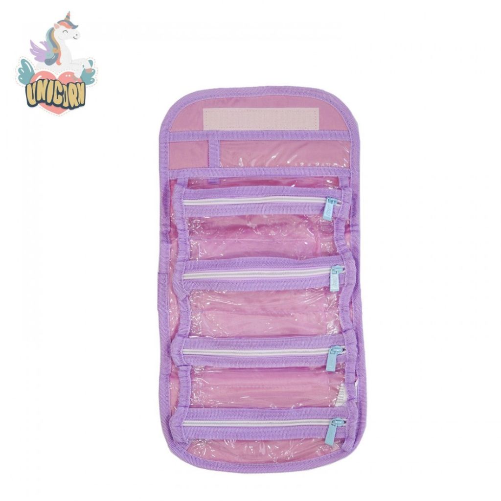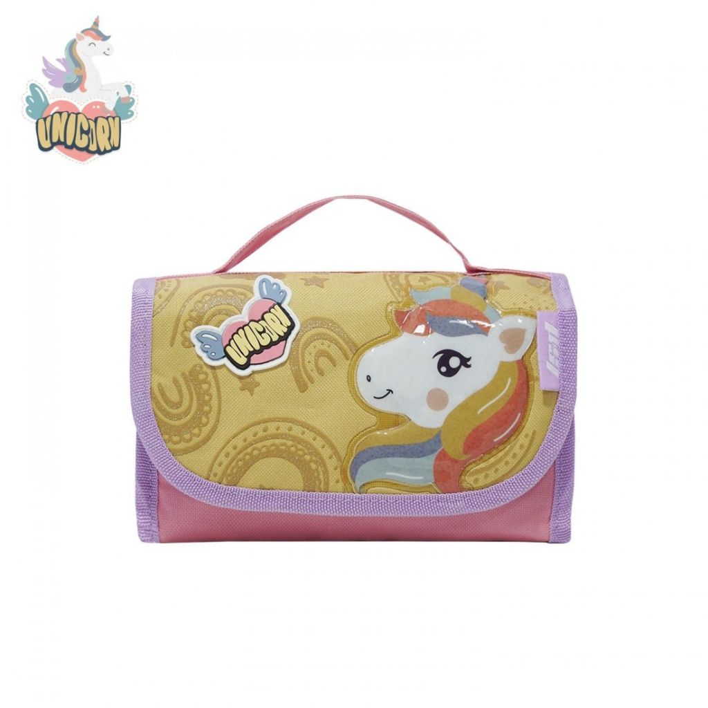 Cuenta con cierre reforzado y múltiples compartimentos interiores que permiten organizar lápices, marcadores, reglas y otros útiles escolares de forma ordenada. Su formato plegable es súper práctico para transportar y guardar en la mochila. Colorida, resistente y con un diseño encantador que enamora a grandes y chicos.