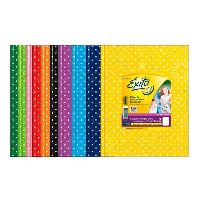 El Cuaderno Éxito  con diseño de lunares es la opción perfecta para estudiantes que buscan un producto de calidad y estilo. Con un tamaño de 16×21 cm y 19×23, este cuaderno cuenta con 48 hojas rayadas, ideales para tomar apuntes, realizar tareas o plasmar ideas. Su encuadernación cosida garantiza una durabilidad excepcional, permitiendo que cada hoja se mantenga en su lugar sin importar el uso. La tapa de cartón duro proporciona una protección adicional, asegurando que tus notas estén siempre seguras. Disponible en varios colores, puedes seleccionar el que más te guste al momento de la compra. Este cuaderno no solo es funcional, sino que también añade un toque de diversión a tu material escolar con su atractivo diseño de lunares. Perfecto para estudiantes de todas las edades, el Cuaderno Éxito 1 es una elección práctica y estilizada para el día a día académico.