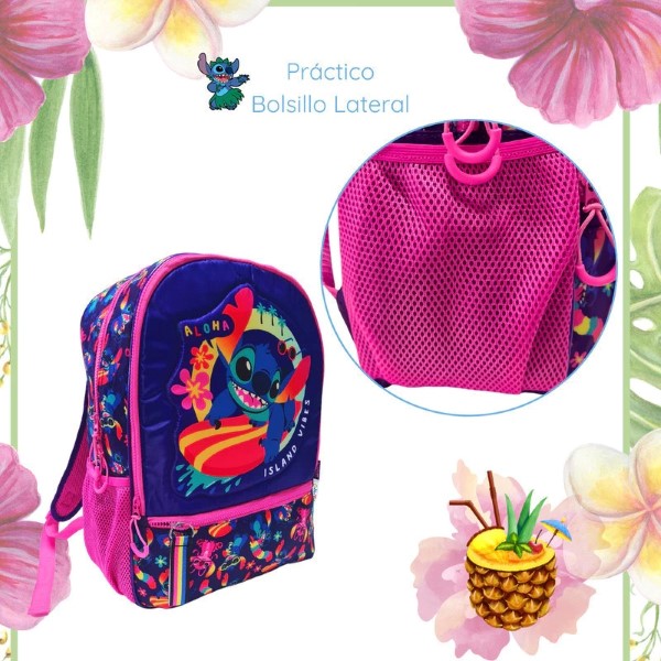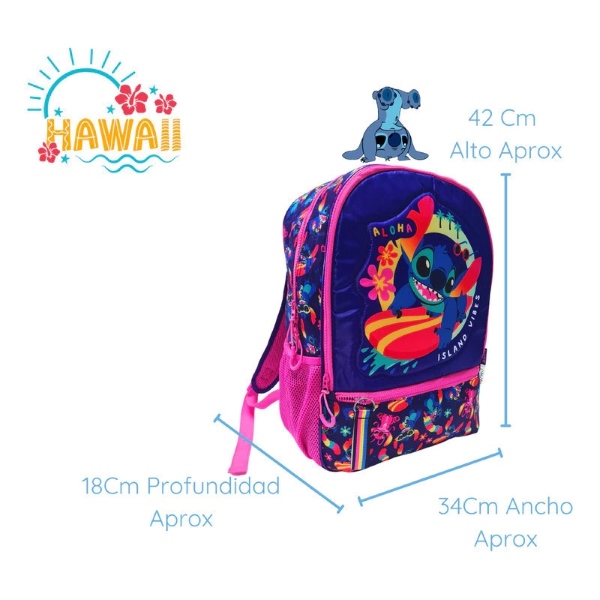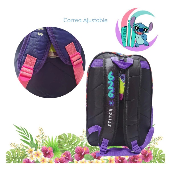 Esta mochila de 17 pulgadas es ideal para los fanáticos de Stitch que buscan un estilo moderno y fresco. El diseño presenta a Stitch surfeando sobre un fondo negro, lo que le da un toque atrevido y divertido. Fabricada con materiales de alta calidad, esta mochila es resistente y duradera, perfecta para llevar libros, cuadernos y otros útiles escolares. Las correas acolchadas y ajustables garantizan comodidad durante todo el día, mientras que los compartimentos amplios permiten mantener todo organizado. ¡Un accesorio imprescindible para los seguidores de Stitch y la cultura surfer!