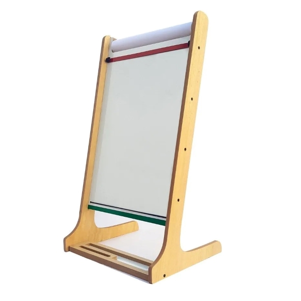 Pizarra práctica y funcional, montada sobre atril regulable de pie, ideal para aulas, oficinas, talleres y presentaciones. Su superficie permite escribir y borrar fácilmente con marcadores para pizarra, garantizando un uso cómodo y duradero. Diseño estable y resistente, pensado para acompañar el trabajo diario.