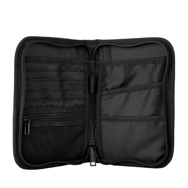 - Portadocumentos con tecnología RFID, material que protege los documentos contra escaneos indeseados.