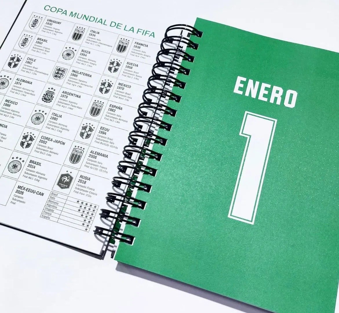 - Tapas duras y diseño exclusivo con el espíritu del Mundial 2026.