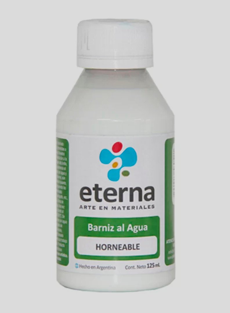 Terminación brillante y resistente al lavado en superficies decoradas con pinturas acrílicas. Una vez horneado, se convierte en permanente y lavable, ideal para proyectos sobre cerámica, vidrio, loza y porcelana.