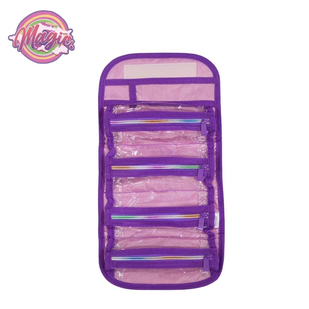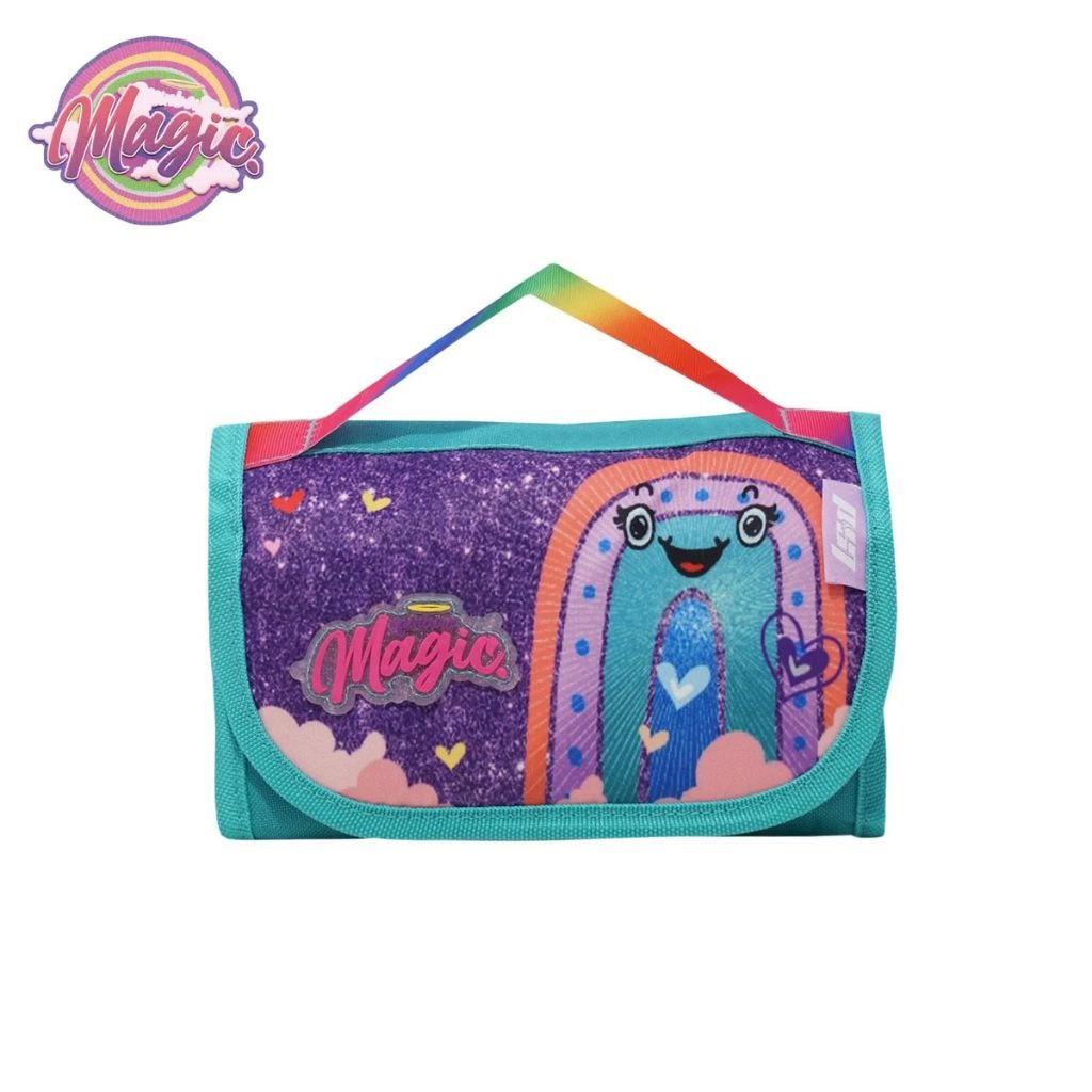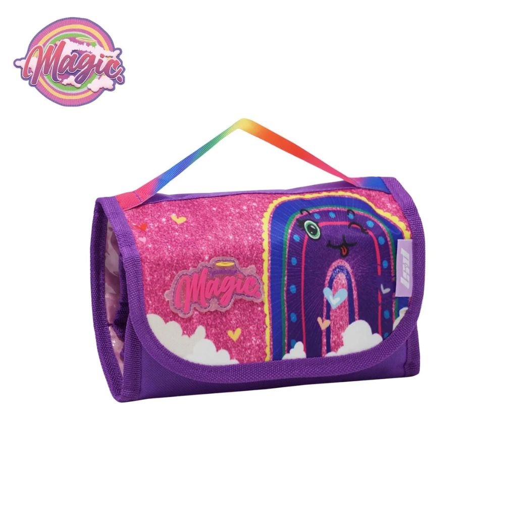 Cuenta con cierre reforzado y múltiples compartimentos interiores que permiten organizar lápices, marcadores, reglas y otros útiles escolares de forma ordenada. Su formato plegable es súper práctico para transportar y guardar en la mochila. Colorida, resistente y con un diseño encantador que enamora a grandes y chicos.