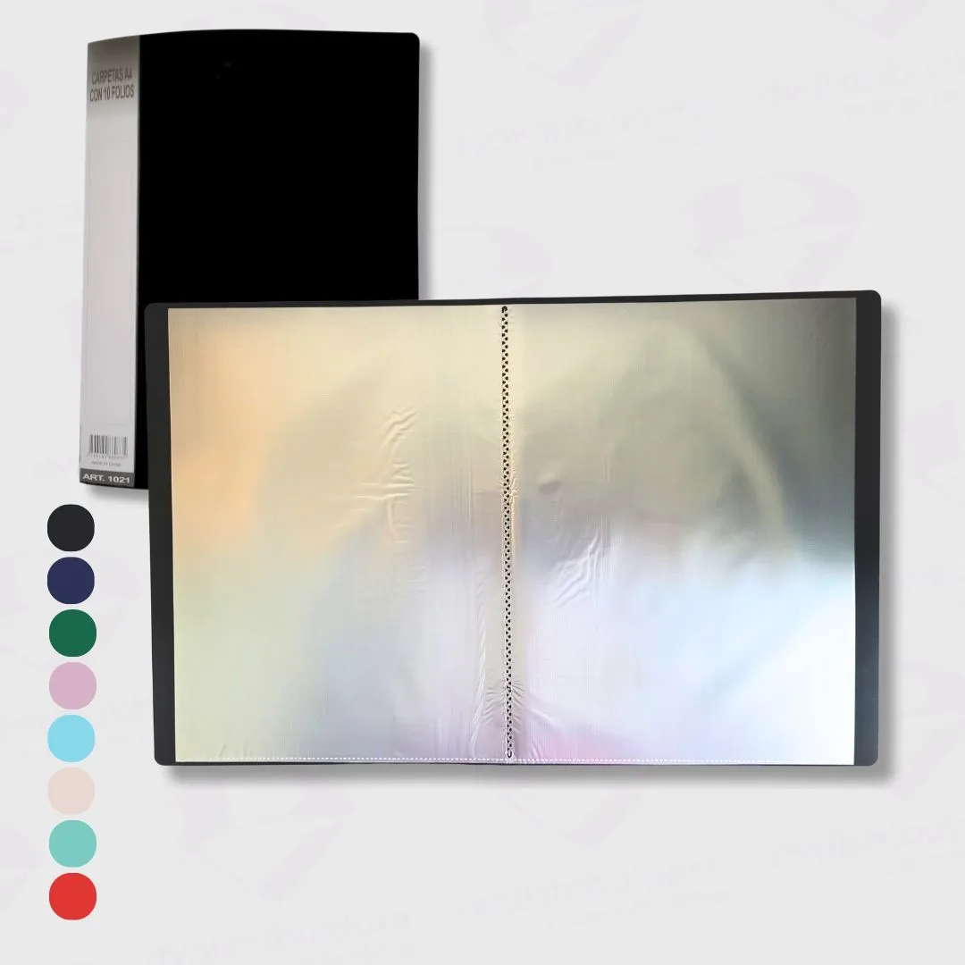 Ideal para organizar, proteger y presentar documentos de forma práctica y profesional. Fabricada en material plástico resistente, con lomo reforzado y sistema de encuadernación fija. Los folios son transparentes, de apertura superior, aptos para fotocopias o impresiones. Perfecta para uso escolar, oficinas o presentaciones comerciales.