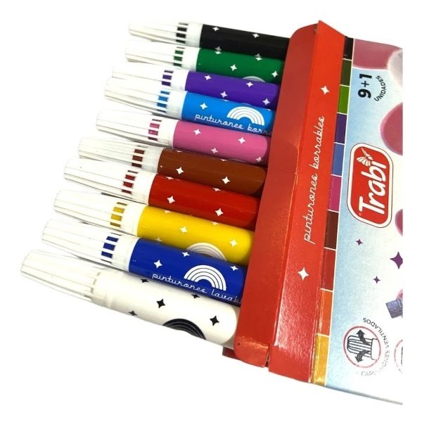 MARCADORES BORRABLES GRUESOS X 9 COLORES + 1 MARCADOR BORRABLE: Estuches con 9 marcadores de colores brillantes + 1 borrafibra para volar tu creatividad sobre el papel .