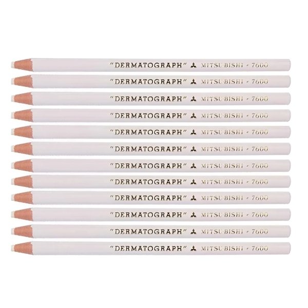 Los lápices dermatograph Mitsubishi 7600 se pueden utilizar para escribir en la mayoría de superficies. Tienen una excelente resistencia a la luz. Las marcas no deseadas se pueden eliminar de cualquier superficie lisa no porosa. Las minas de estos lápices dermatográficos Mitsubishi 7600 están hechas de cera, talco y pigmento, contenidos en un envoltorio de papel. El envoltorio de papel se puede quitar tirando del hilo interior, que a su vez expondrá más mina.