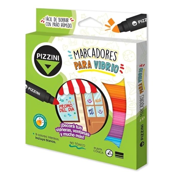 Los ‘Marcadores Pizzini Para Vidrio X 9 Unidades’ son la herramienta perfecta para quienes buscan creatividad y funcionalidad en sus proyectos. Diseñados especialmente para escribir en superficies de vidrio y plástico, estos marcadores son ideales para manualidades, presentaciones y trabajos artísticos.