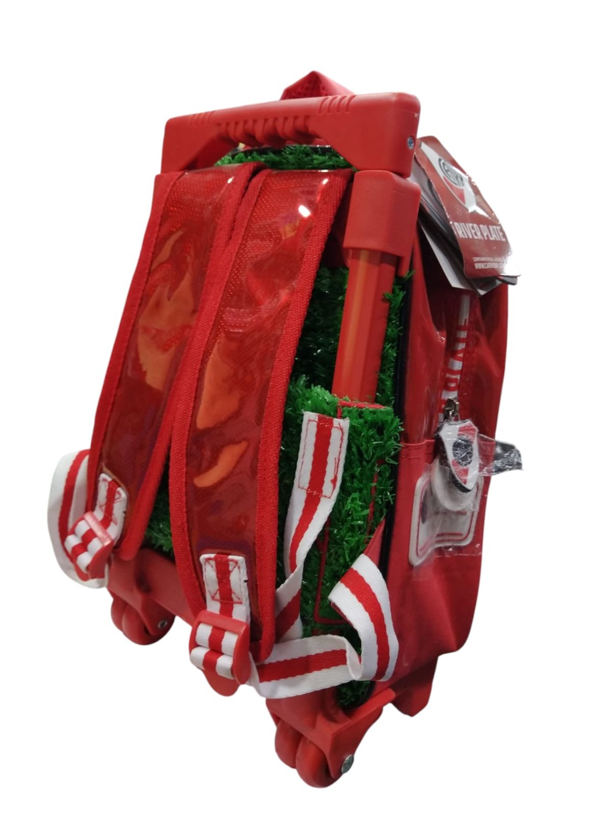 Mochila práctica y resistente con diseño oficial de River Plate, ideal para uso escolar o actividades diarias.