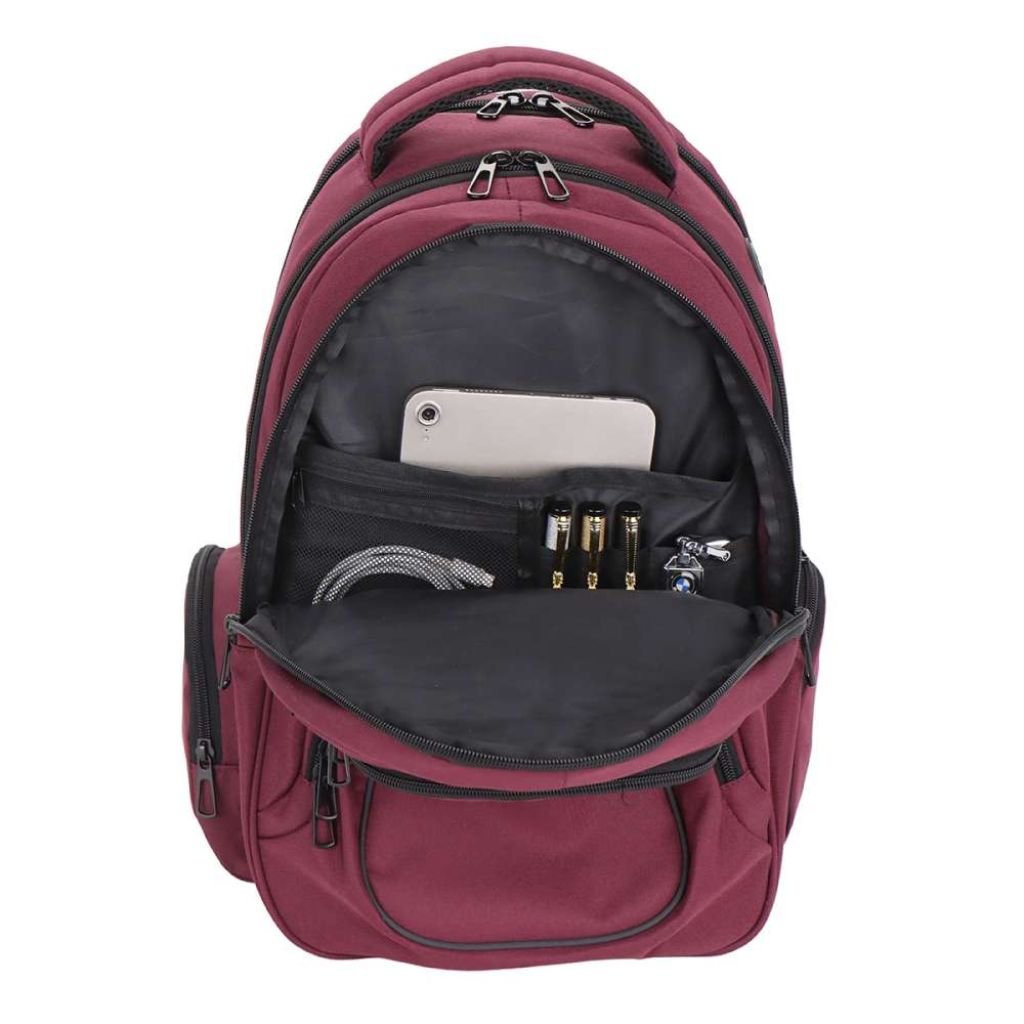 – Compartimento secundario con organizador y bolsillo de red con cierre