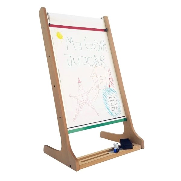 Pizarra práctica y funcional, montada sobre atril regulable de pie, ideal para aulas, oficinas, talleres y presentaciones. Su superficie permite escribir y borrar fácilmente con marcadores para pizarra, garantizando un uso cómodo y duradero. Diseño estable y resistente, pensado para acompañar el trabajo diario.