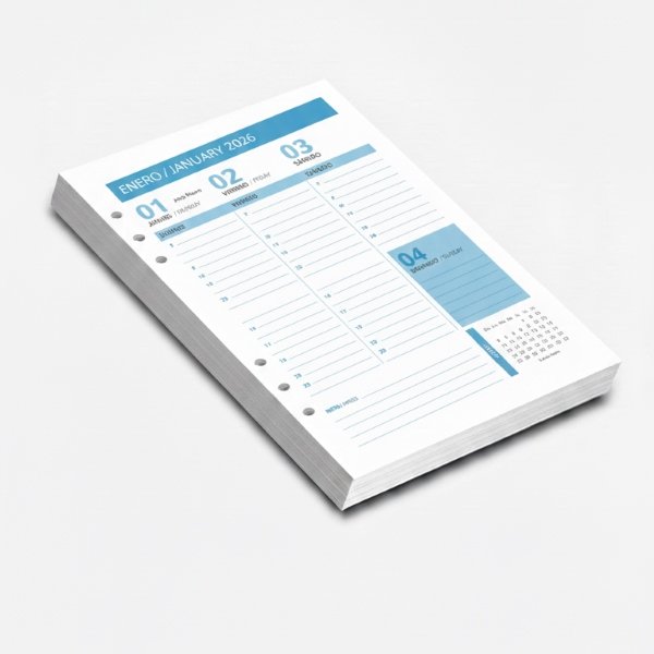Nuestros repuestos para agendas han sido diseñados pensando en la funcionalidad y adaptabilidad. Independientemente de si prefieres un enfoque diario detallado o una vista semanal general, te ofrecemos opciones que se adaptan a tu estilo de vida y te ayudarán a mantener tu vida organizada de la manera que mejor te funcione.