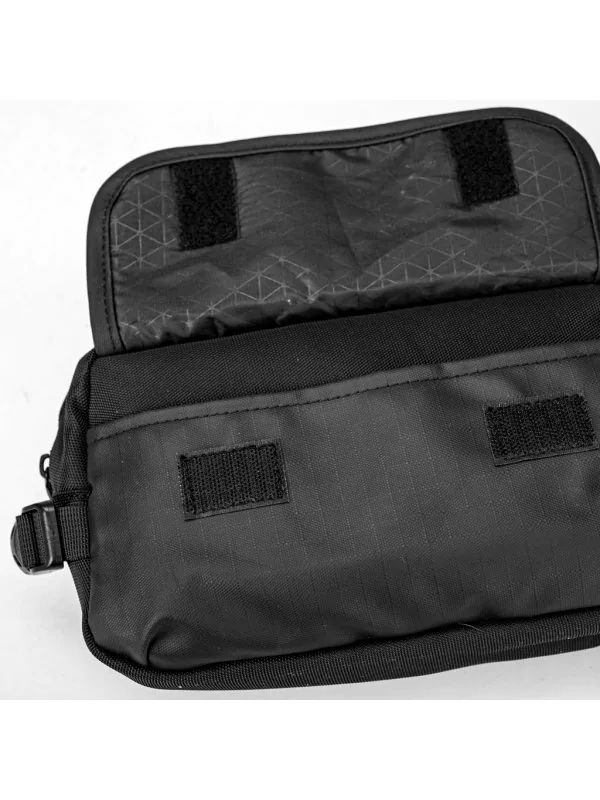 Bolso rectangular compacto tipo riñonera, ideal para llevar lo esencial de forma práctica y estilizada. Cuenta con un bolsillo frontal con tapa para mayor seguridad, cinta ajustable y tira regulable para un ajuste cómodo. Su interior forrado incluye un bolsillo interno para una organización óptima. Perfecto para cualquier ocasión.