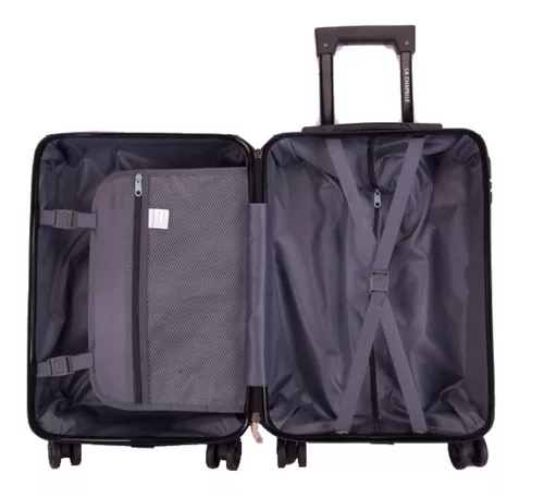 La valija La Chapelle 20″ es ligera, rígida y aprobada para cabina, perfecta para viajes cortos. Cuenta con carro metálico ajustable en dos posiciones, 4 ruedas giratorias 360º para fácil maniobrabilidad y un candado de combinación incorporado para mayor seguridad. Su interior incluye un bolsillo y correas de sujeción para organizar tus pertenencias.