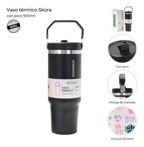 El Vaso Térmico Skora con Tapa y Pico es la solución ideal para quienes buscan disfrutar de sus bebidas favoritas en cualquier momento del día. Con una capacidad de 900 ml, este vaso es perfecto para mantener tus bebidas frías hasta por 6 horas, permitiéndote disfrutar de un refresco helado o un café caliente en tus actividades diarias.